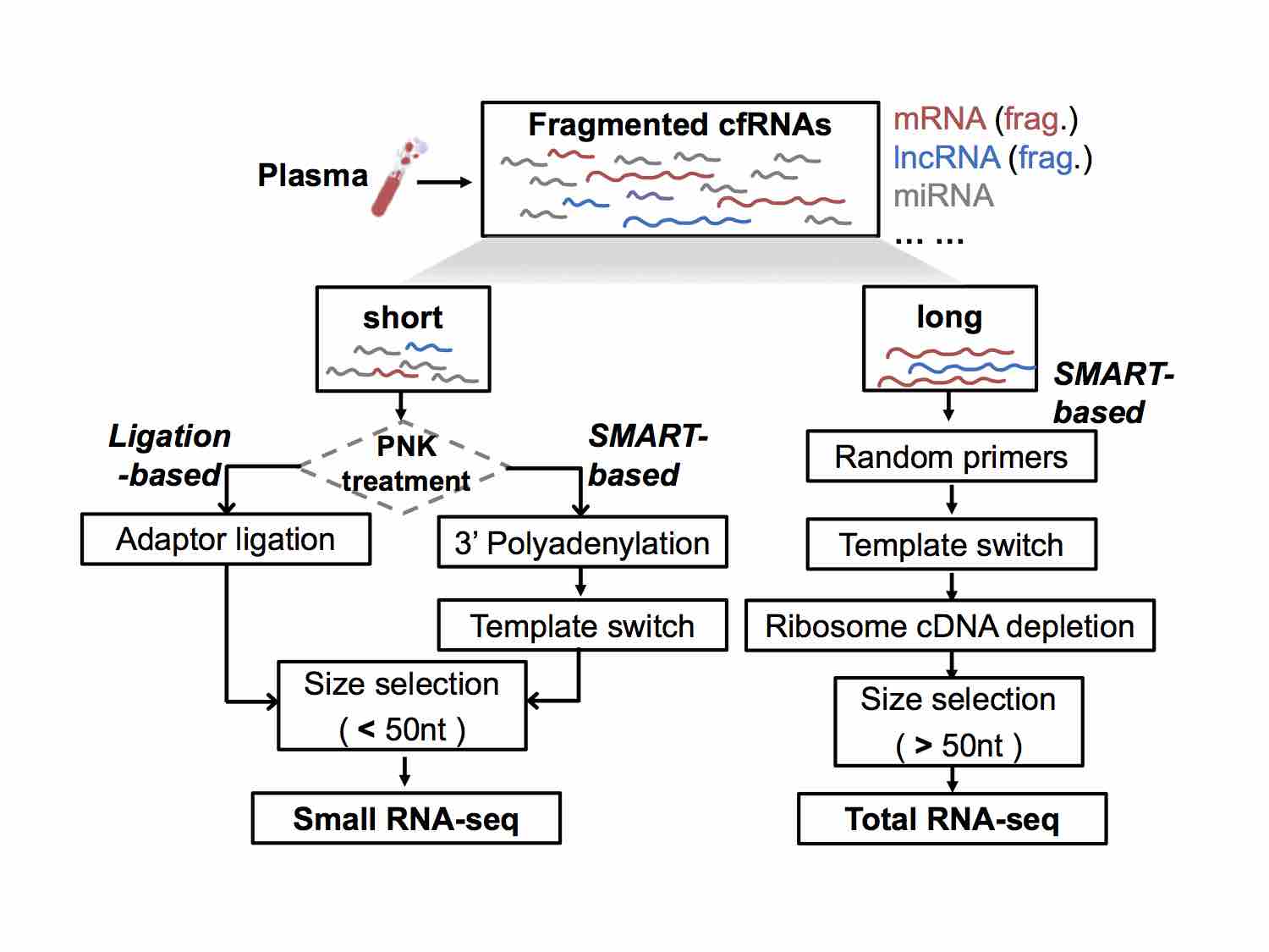 包含small cfRNA/exRNA和total cfRNA/exRNA的全转录组捕获、富集和测序方案: